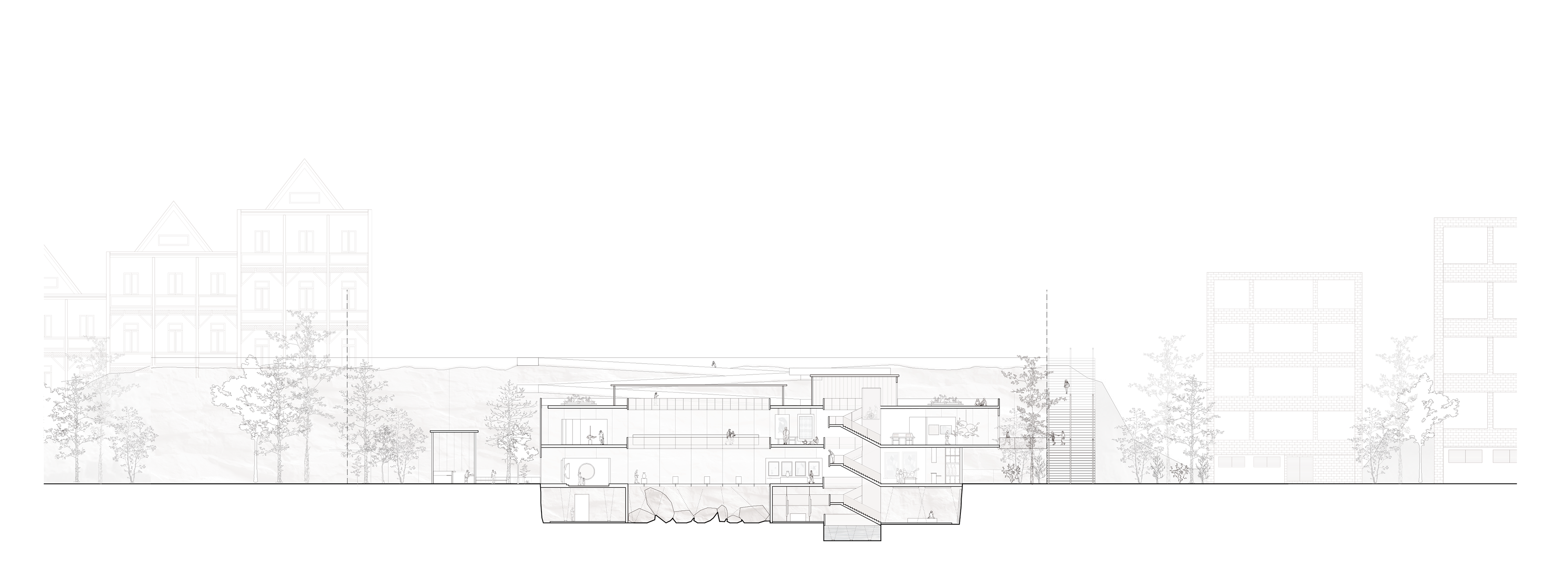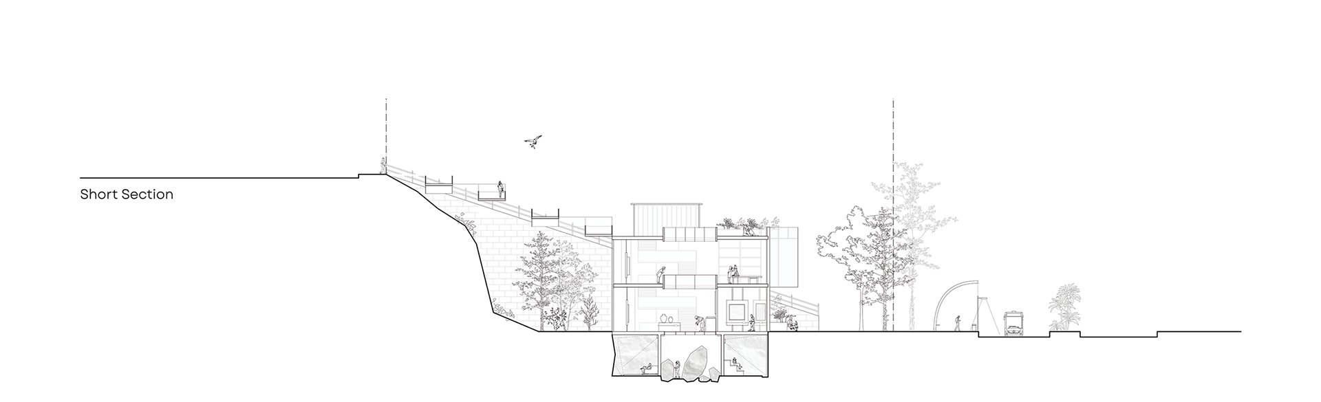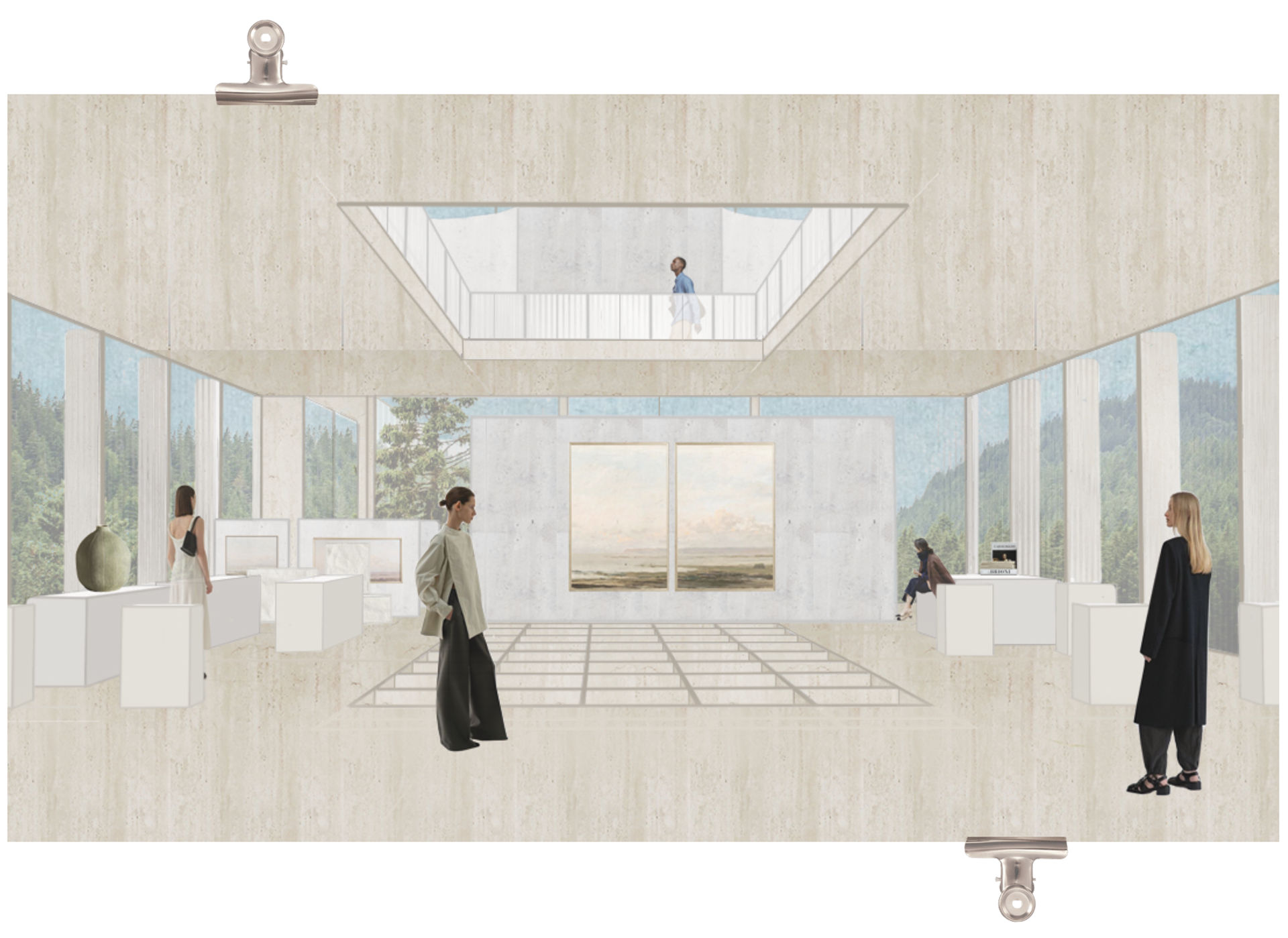 This visual material library is envisioned as an active landscape for making while learning, exhibiting, and collaboration. The building leads visitors through a series of distinct exhibition zones, each supporting different processes and scales of fabrication. Along the route, users encounter in-progress projects, and framed views into studios, turning circulation into a continuous act of discovery and engagement. Developed through a stratified spatial strategy, the design weaves together spaces for production, display, support, and documentation, culminating in a vertically articulated structure that showcases and celebrates creative practice in all its forms.